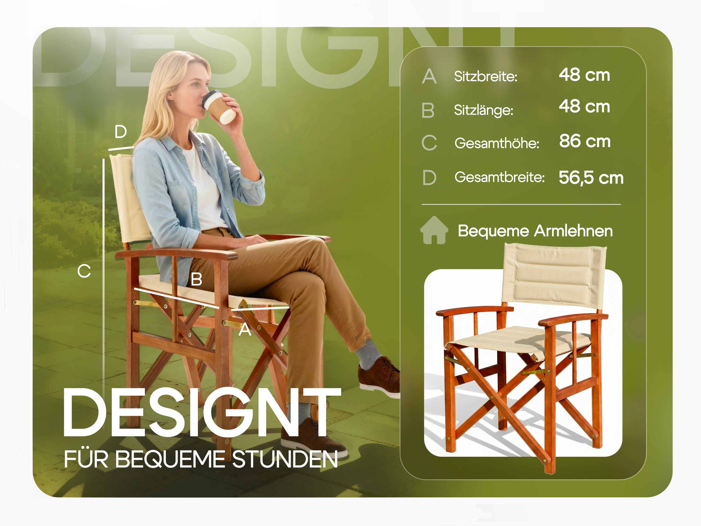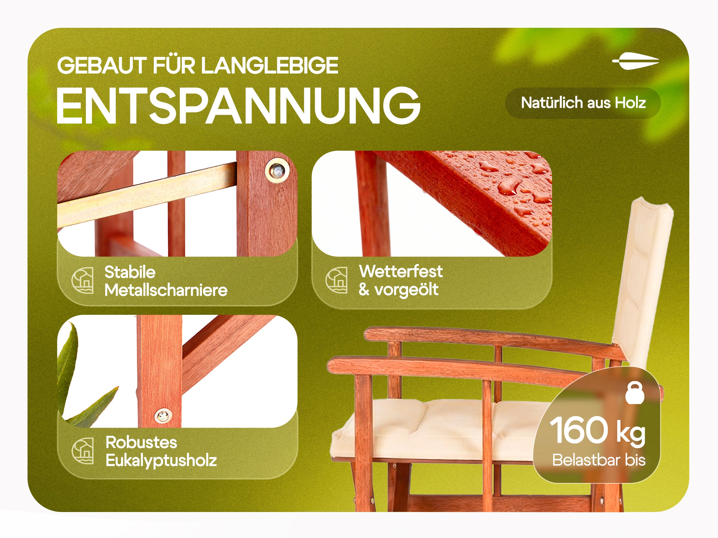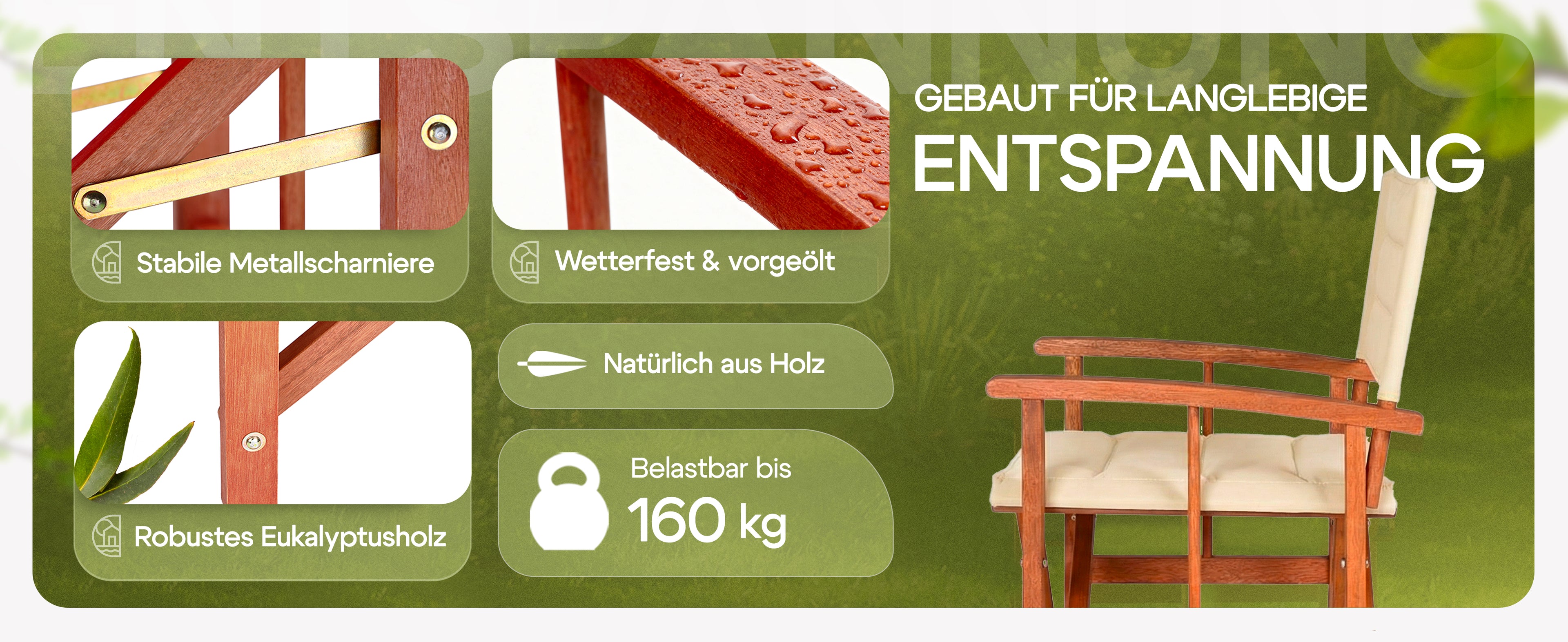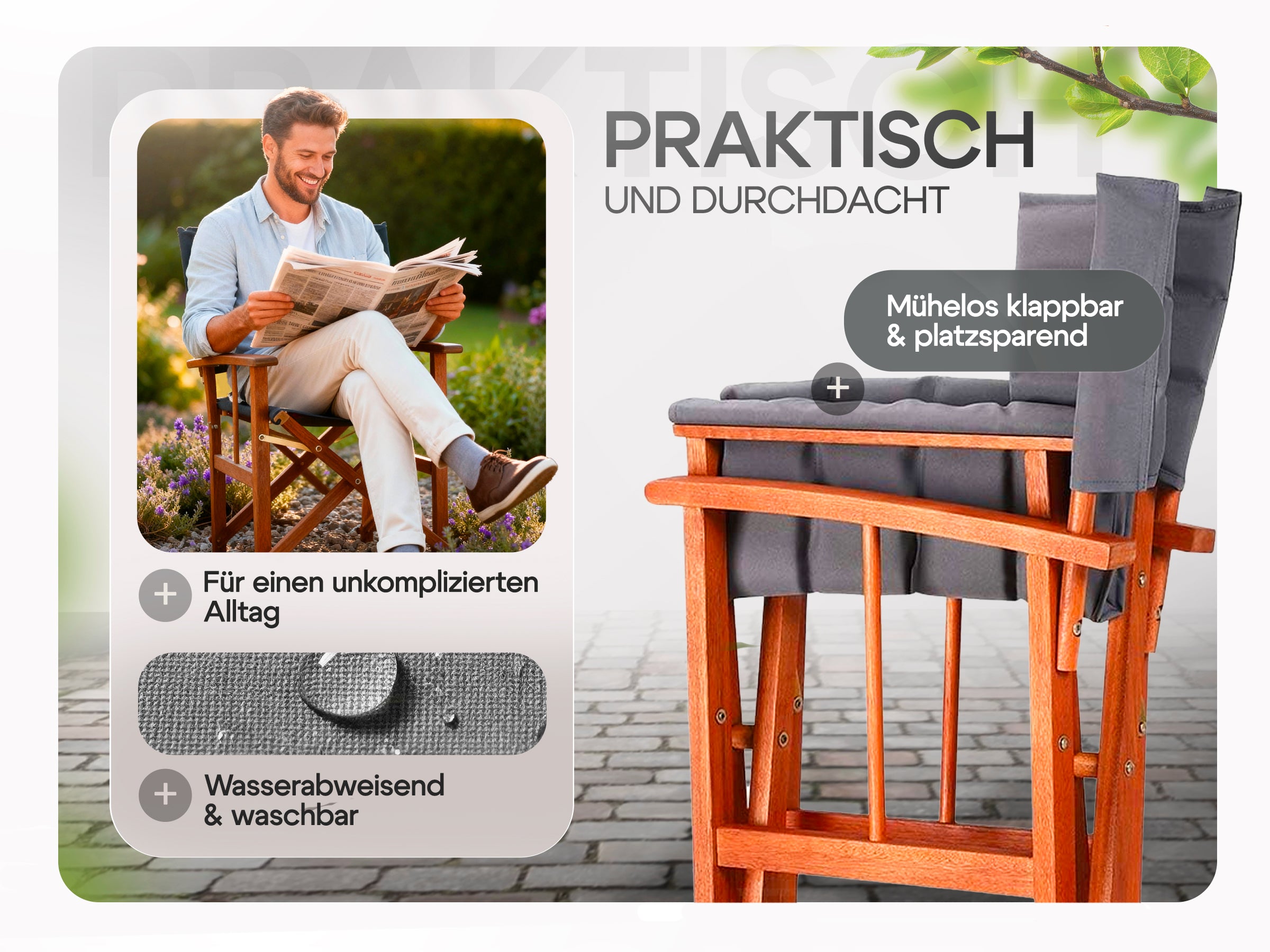 Die Herausforderung bestand darin, einen klassischen Regiestuhl als langlebiges Premium-Möbelstück für den Außenbereich zu positionieren. Es galt, die Brücke zwischen der rustikalen Ästhetik von Eukalyptusholz und der modernen Funktionalität (Wetterfestigkeit, Belastbarkeit) zu schlagen, um sich von günstigen Alternativen abzuheben.