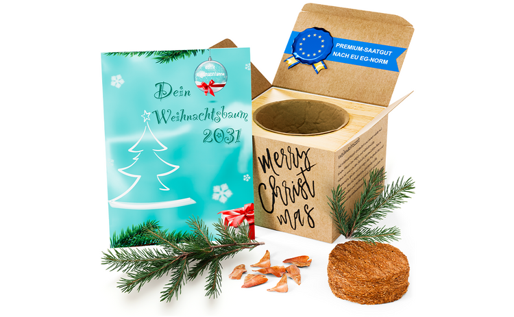 Ein nachhaltiges Pflanzset, mit dem ein echter Tannenbaum bis Weihnachten 2031 heranwächst – ideal als besonderes Geschenk mit Zukunft.