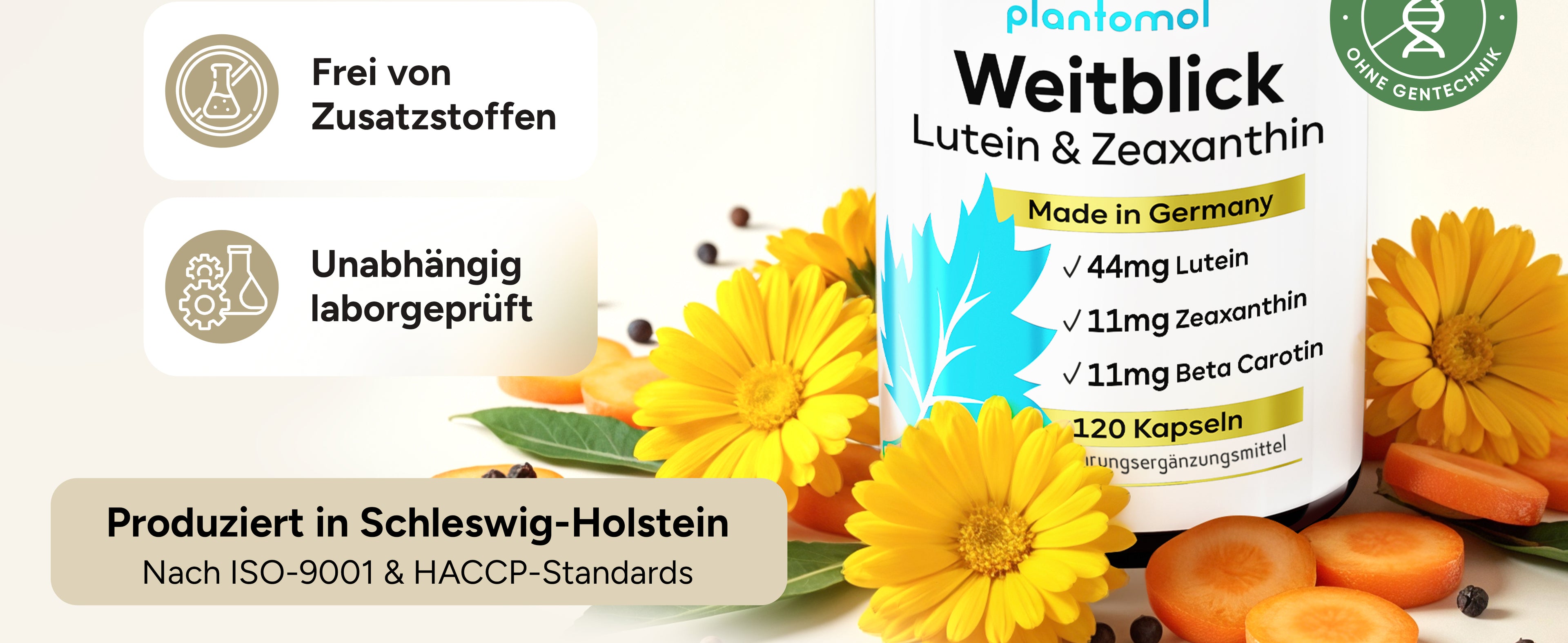 Ein Qualitätsversprechen aus Deutschland: vegane Zusammensetzung, frei von Zusatzstoffen, ohne Gentechnik sowie unabhängige Laborprüfung. Die Herkunft „Produziert in Schleswig-Holstein“ und ISO/HACCP Standards runden das Vertrauen in die Produktqualität ab.
