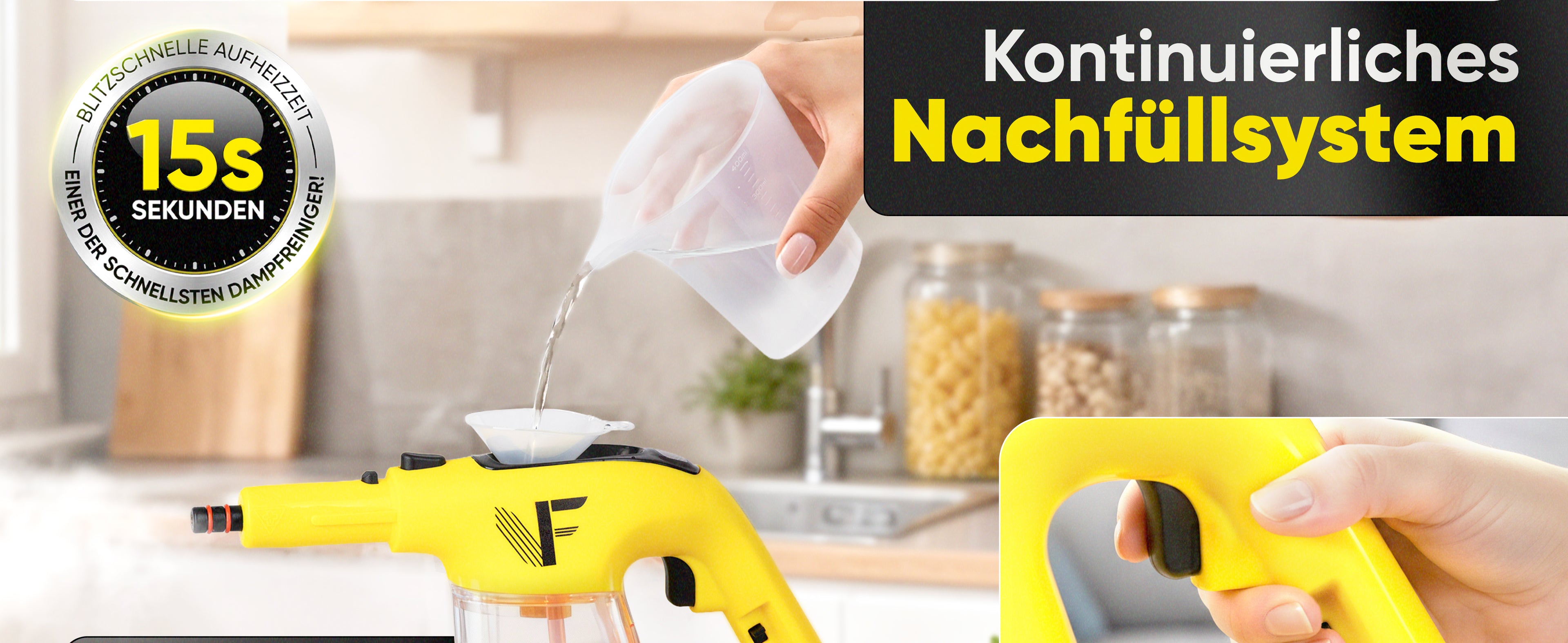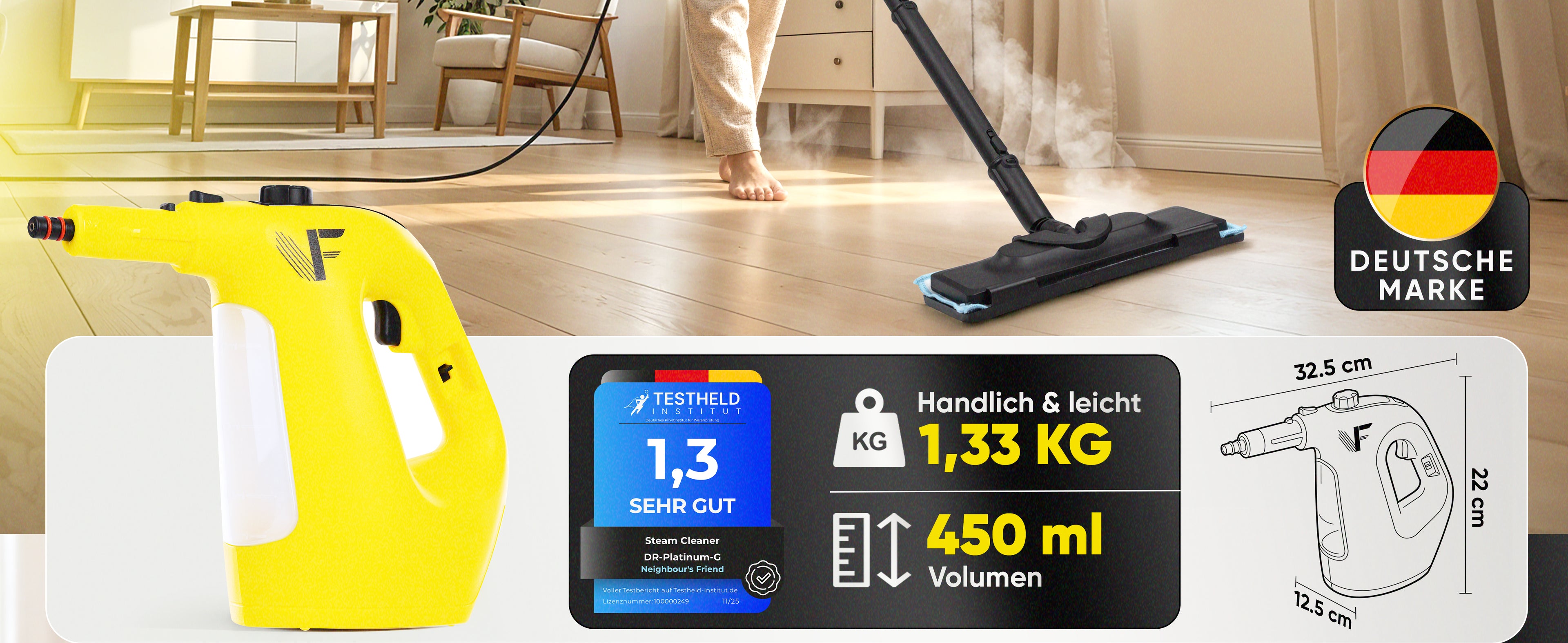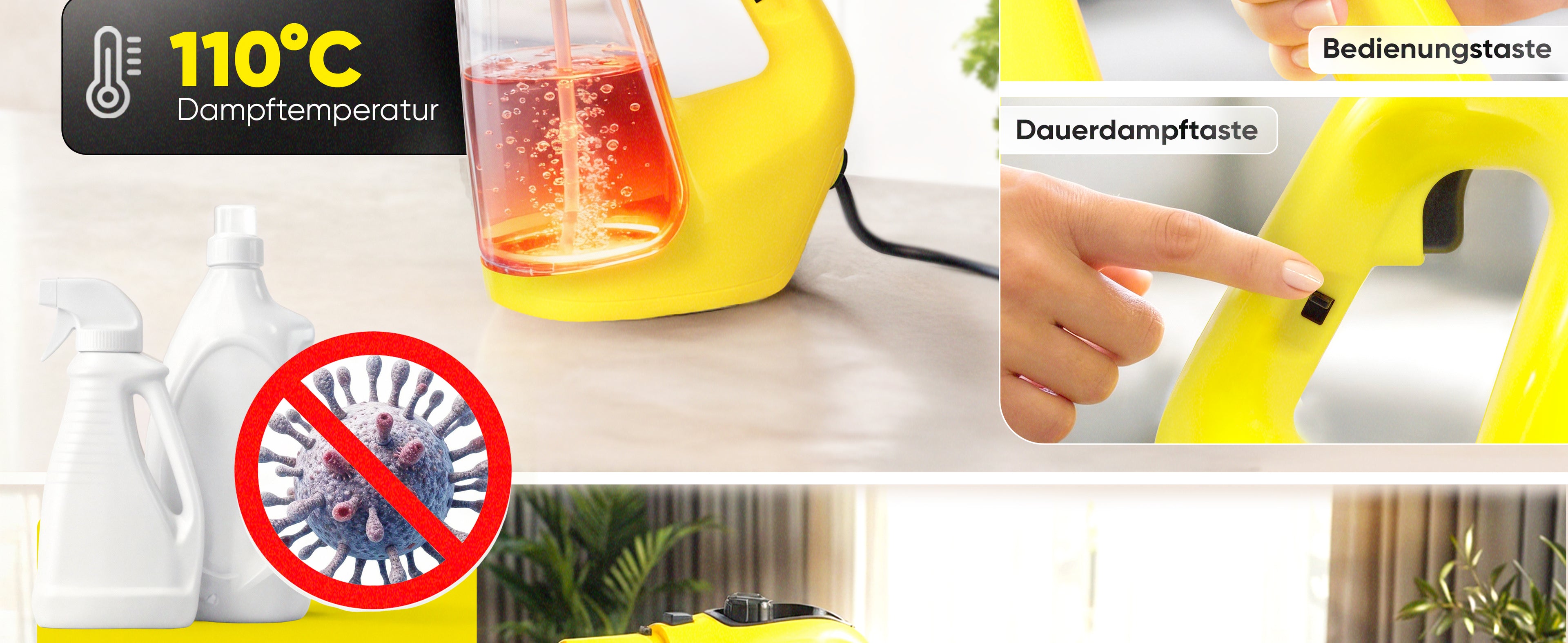 Die Anwendung: Sofortige Adressierung der Vielseitigkeit. Vom Handgerät zum 1,20m Dampfmopp: Einfachheit trifft Power.