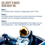 Sobald wir jedoch auf Basis Ihres Briefings mit der Leistungserbringung begonnen haben (z. B. mit der Erstellung des Briefings oder ersten Entwürfen), ist eine Rücknahme verständlicherweise nicht mehr möglich, da in diesem Moment bereits interne Kosten für uns entstehen.