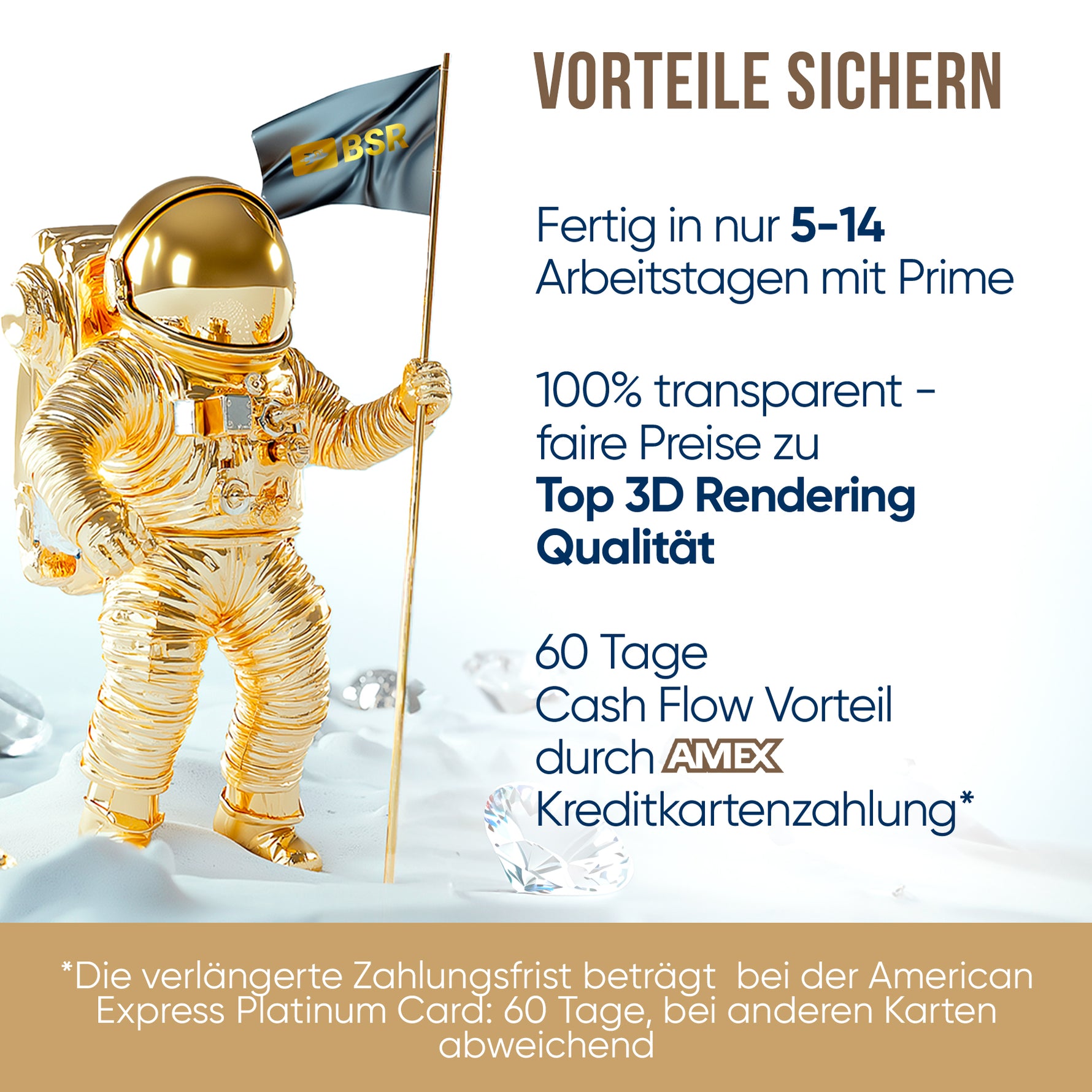 Stay ahead of the competition: Hochwertige 3D-Renderings steigern deine CTR, den wahrgenommenen Wert deiner Marke und lassen dich in einem hart umkämpften Markt herausstechen.